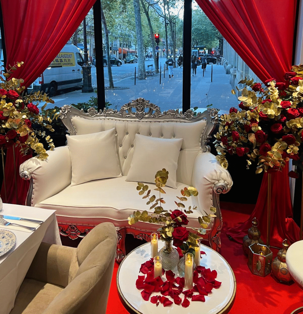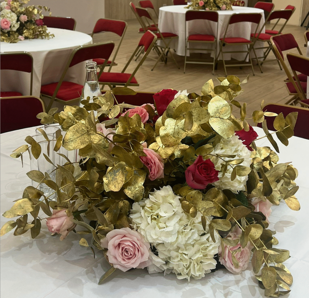 Murielle Events a eu l’honneur d’organiser le mariage de Marine et Jason, un événement d’exception célébré en deux temps, mêlant tradition, modernité et raffinement. After-Mairie & Henné dans un restaurant parisien – Une ambiance chaleureuse et festive Le jeudi 16 octobre, les festivités ont débuté dans un restaurant situé dans le 17ᵉ arrondissement de Paris. Pour cet after-mairie et henné, Murielle Events a imaginé une décoration élégante dans les tons rouge et or, conçue et réalisée par Maison Kaspariantz. Les lumières tamisées, les compositions florales raffinées et les détails dorés ont créé une atmosphère à la fois conviviale et raffinée, idéale pour réunir la famille venue de l’étranger autour des mariés. La soirée, animée par le DJ , a mêlé avec brio musiques house et sonorités orientales, offrant une ambiance dynamique et festive. Sous la supervision attentive de Murielle Events, assistée d’une hôtesse dédiée, chaque moment a été orchestré avec soin pour garantir une expérience fluide et harmonieuse.